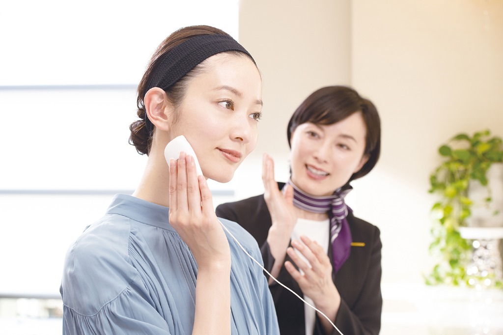 美容器と化粧品の組み合わせにより、お肌にうるおいを与えてお肌のコンディションを整えていきます。